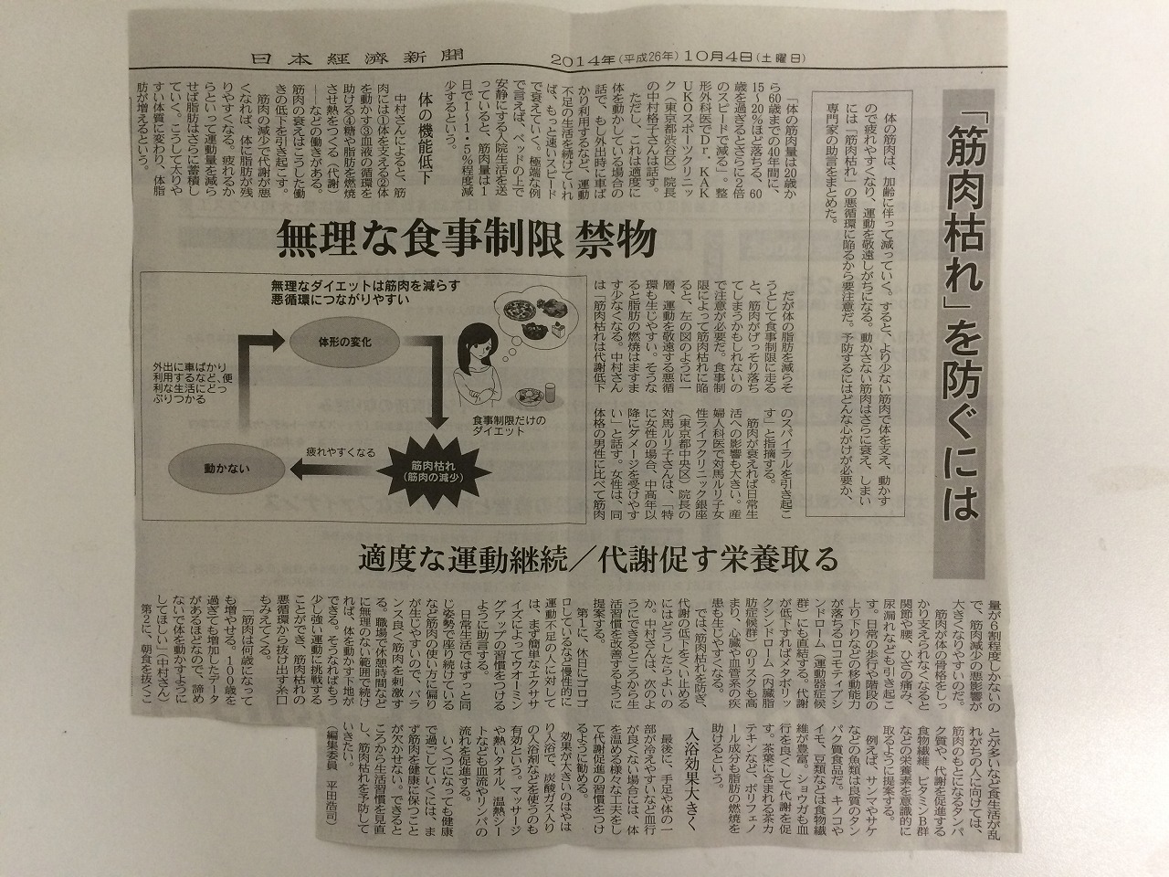 日経新聞は「筋肉枯れを防ぐには」というタイトルで「筋肉強化」の重要性について述べていました。