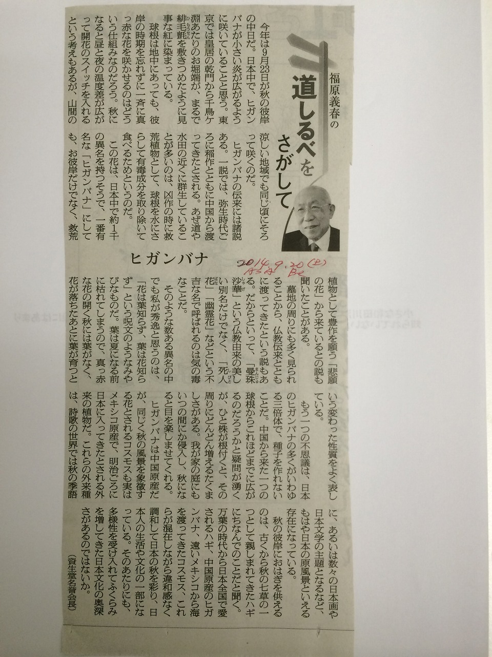 「ヒガンバナ」のタイトルで文章を書かれていましたので