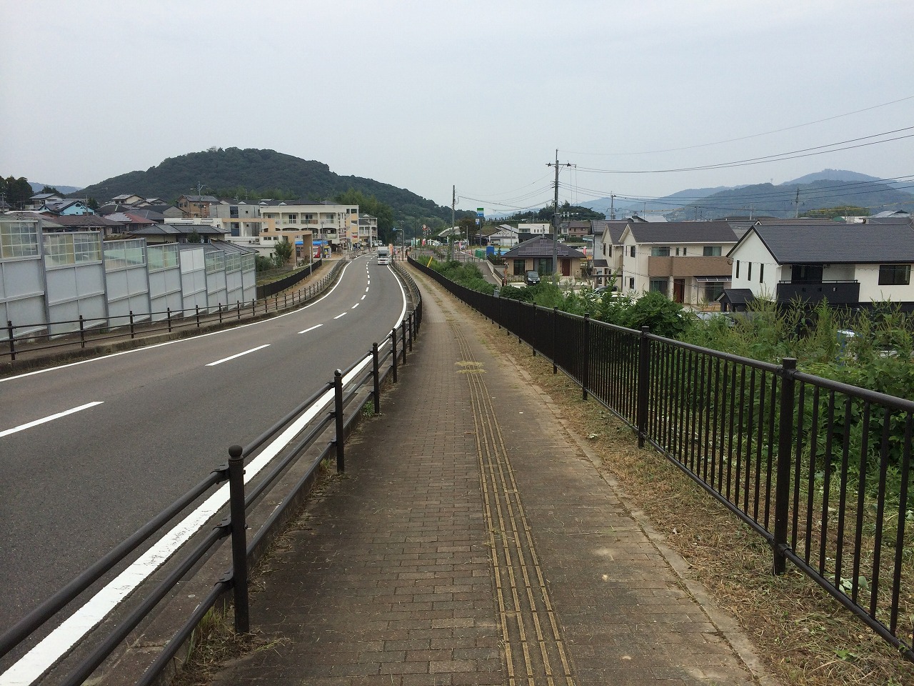 国道沿いの歩道が舗装を剥がして砂利道にしていましたので