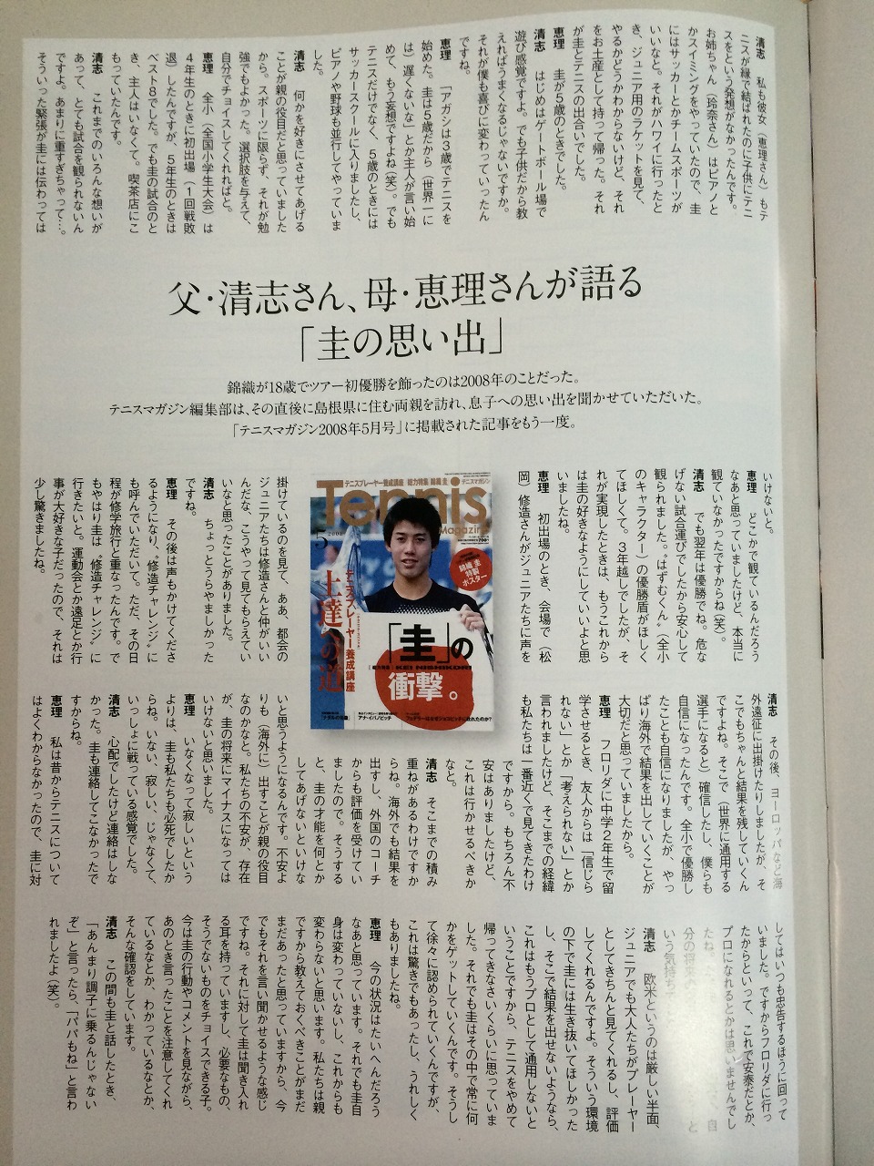 たまたま目に付いた雑誌「テニスマガジン10月号増刊」に