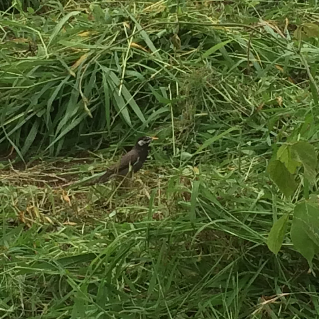 小鳥がぴょんぴょん跳ね回っている虫を啄みにやってきました。