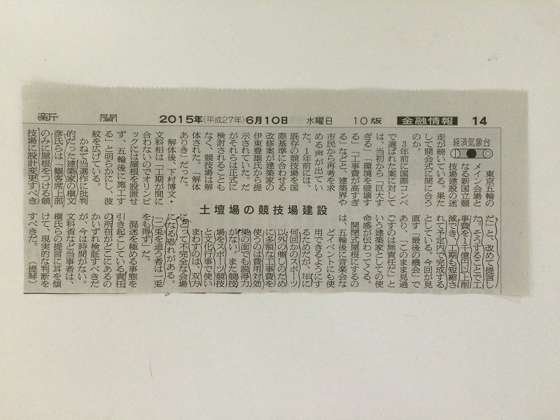 先日、何時ものように新聞を読んでいましたら
