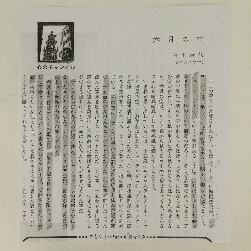 先ず、この最初にご覧頂いた「楽しいわが家」という6月号の小冊子は