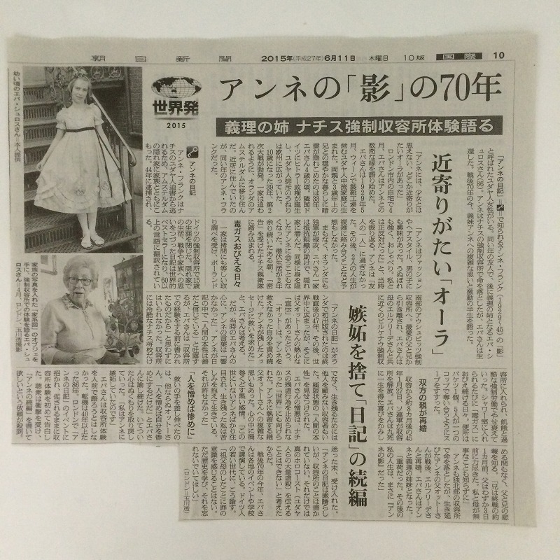 何と義理の姉になるエバ・シュロスさんのアンネ・フランクと一緒に生活していた時の