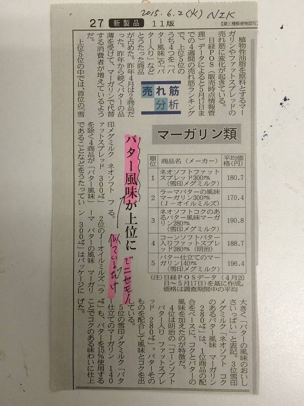 マーガリンと言えば、聞こえがよいのですが