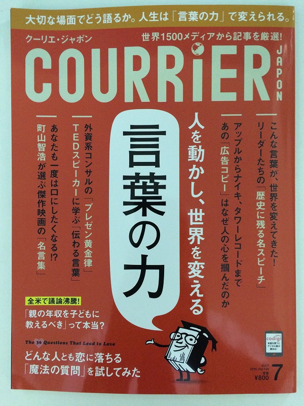 先日買った「クーリエジャポン」の7月号を読んでいましたら