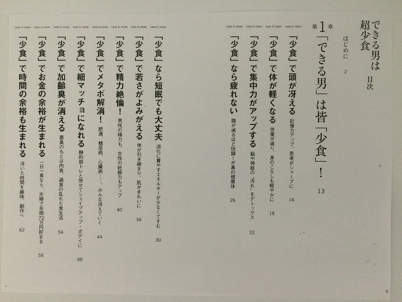 『できる男は、超少食』の目次だけでも掲載しておきたいと思います。