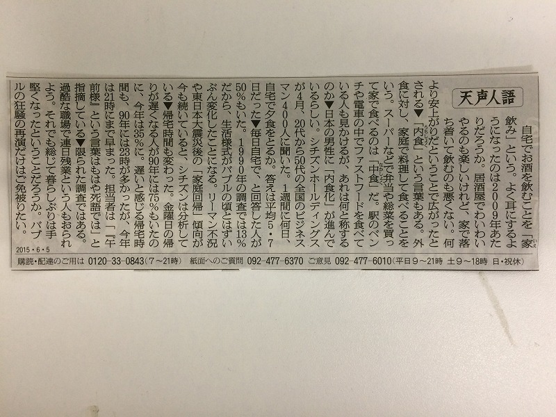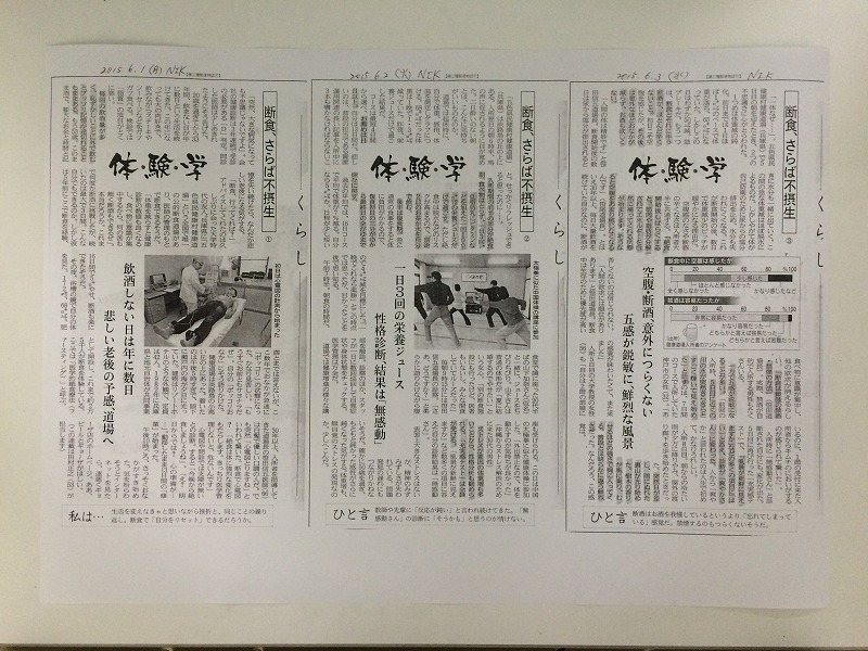 6月1日から日経新聞のくらしの欄に「断食、さらは不摂生」という連載が