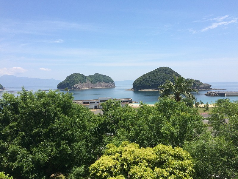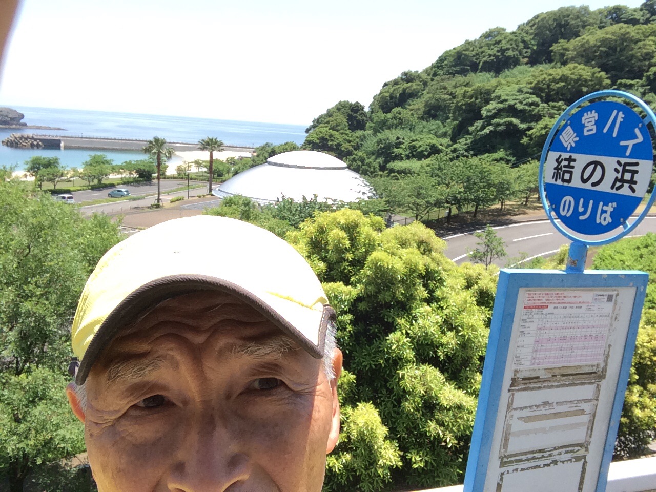 このバス停から下を見下ろすと 「結の浜」ビーチを見ることができます。