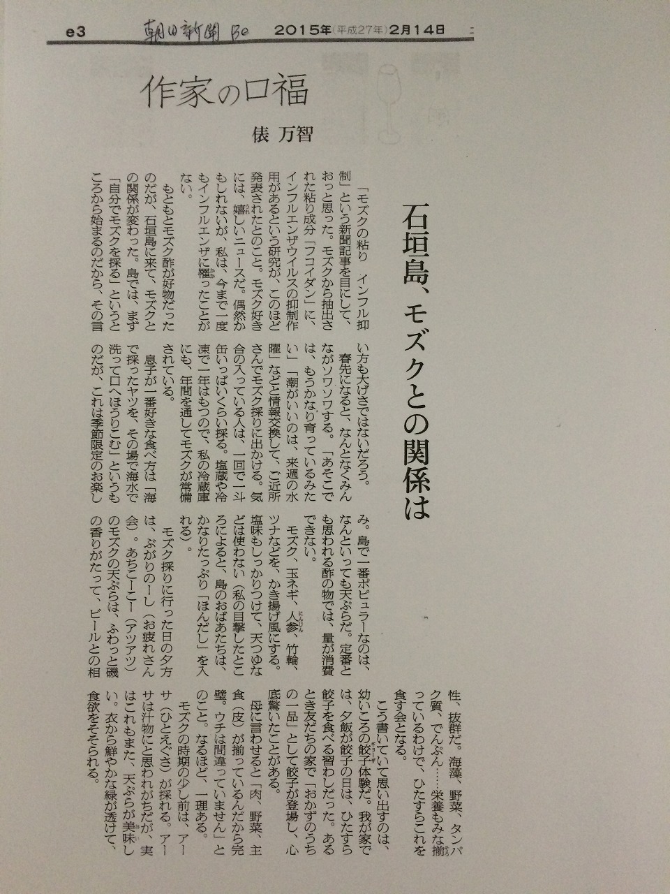 どんなことを考えているかとい朝日新聞の声の欄から