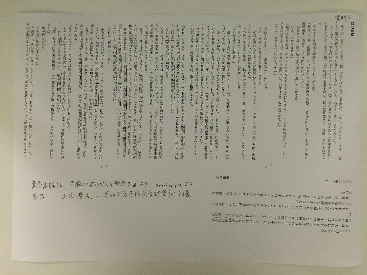 また、資料としては青春出版社から出ている『脳がよみがえる断食力』から