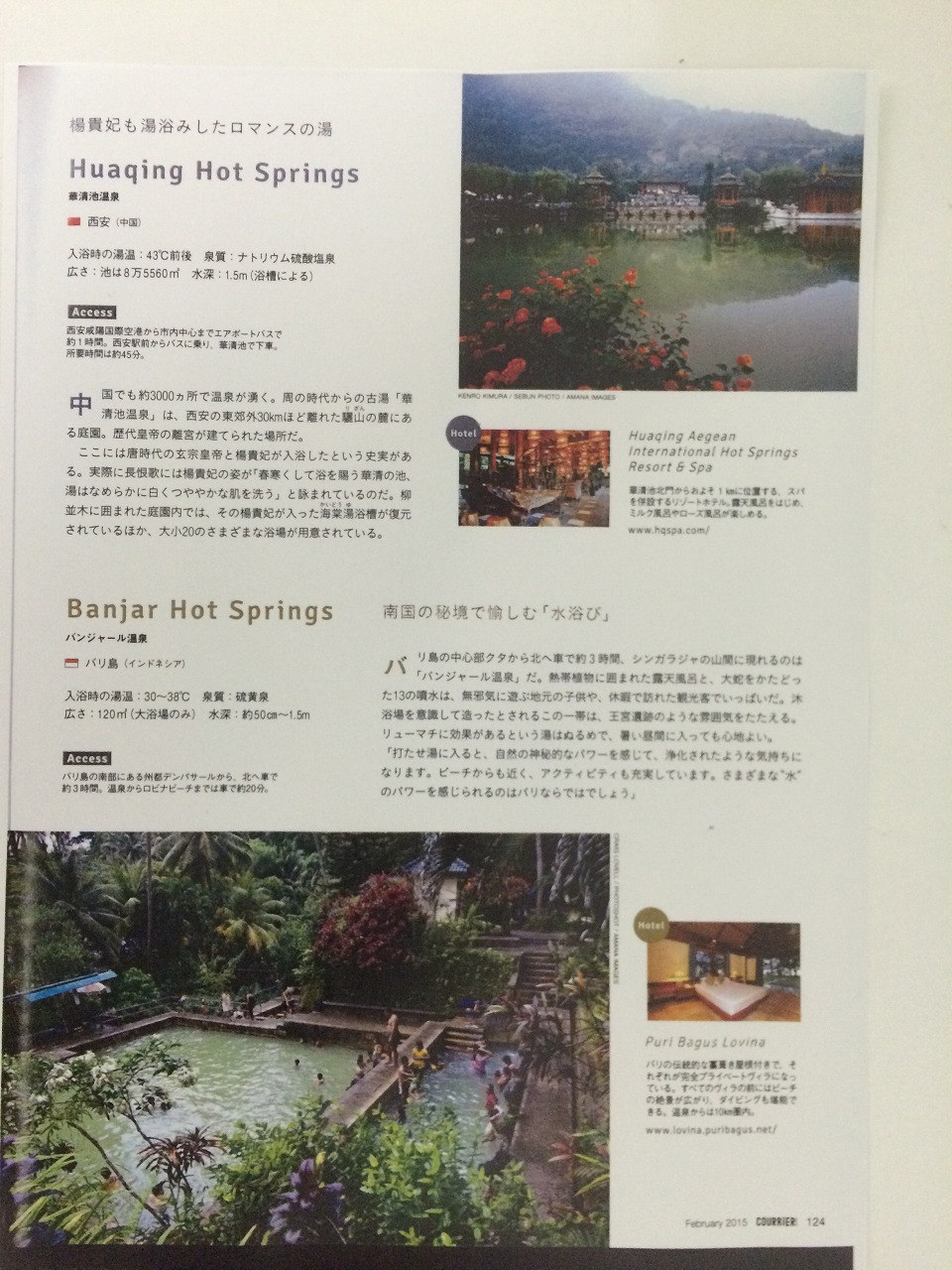 ドイツのバーデン・バーデン、カナダのバンフ、中国西安の華清池温泉、インドネシアのバンジャール温泉などを