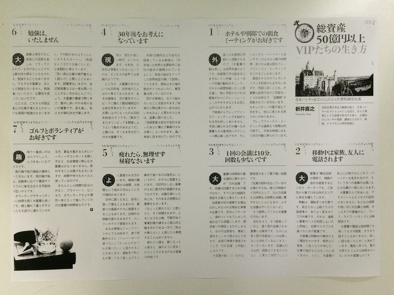 総資産50億円以上のVIPたちの生き方をNO2として、